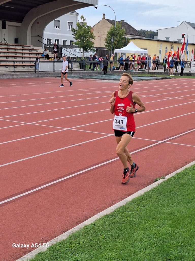 Burgi Brandstetter holte sich über 5000 m in der AK 60 den 1. Platz.